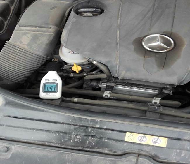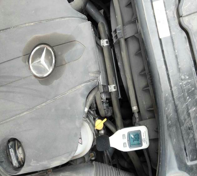 試驗(yàn)設(shè)備:汽車噪音分貝儀(型號GM1351) 奔馳R350發(fā)動機(jī)