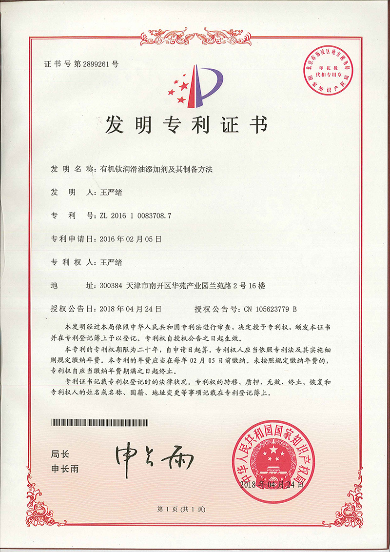 榮譽資質(zhì) 當(dāng)前位置:首頁 > 榮譽資質(zhì) > 有機鈦潤滑油添加劑及其制備方法